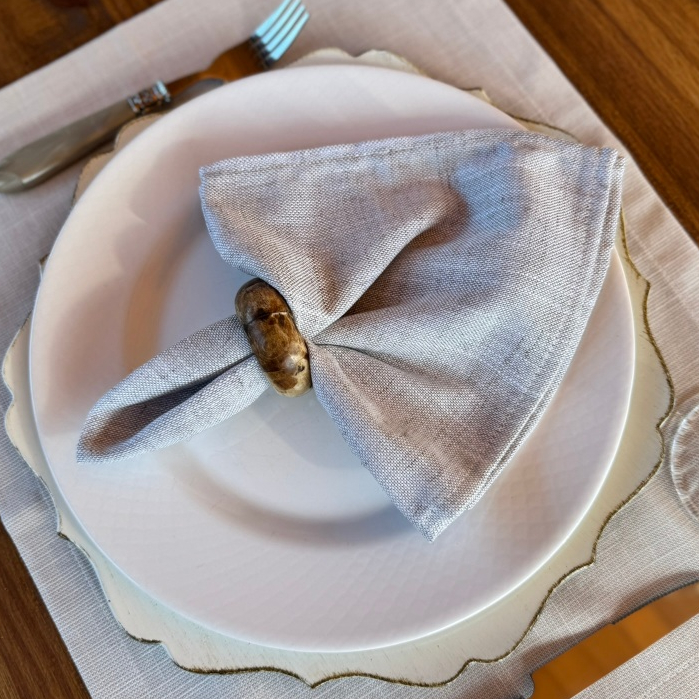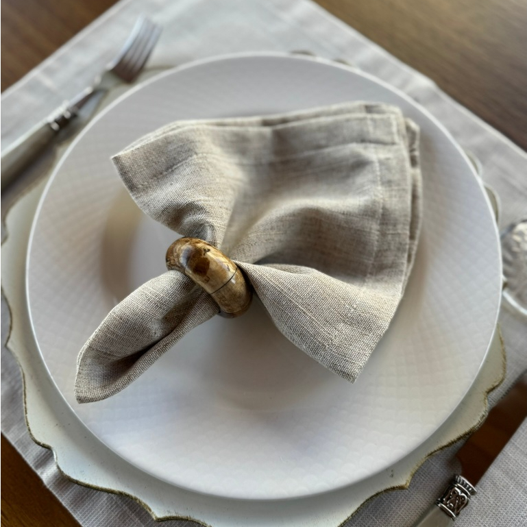 Este kit com 6 guardanapos é confeccionado com tecido de linho misto com poliéster, combinando beleza, resistência e um toque moderno para transformar qualquer refeição em um momento especial.