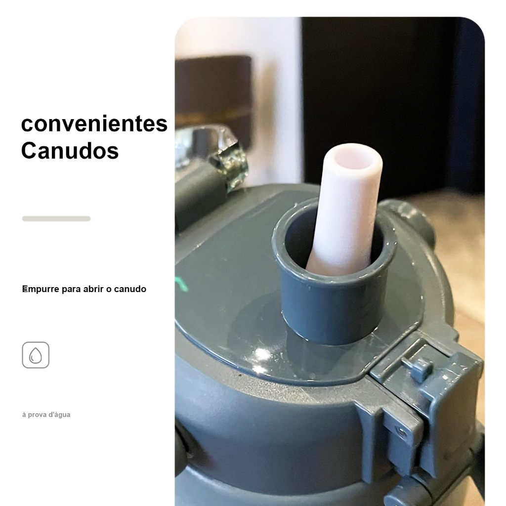 Canudo Integrado: Permite beber com facilidade sem necessidade de inclinar a garrafa.