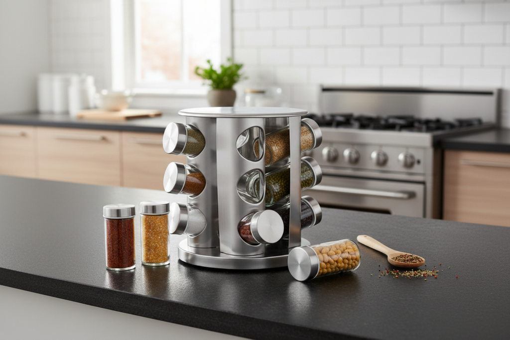 Garanta agora o seu Porta Temperos Giratório Inox e leve funcionalidade e sofisticação para o seu dia a dia.